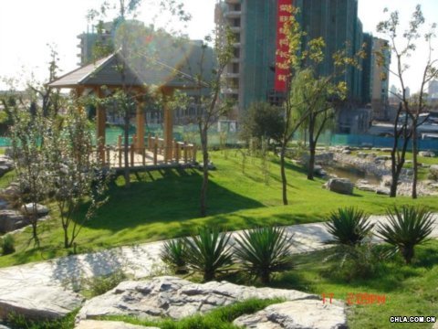 此綠化景觀的整個區域內包括假山山體、人工湖面以及綠植的種植,構成了自然與建筑的巧妙結合,是"山水文園"景觀設計的最大特點。景觀中的瀑布自山上飛流而下,順勢流入樓前的小河,最后匯入中央湖中,使居住在都市中的人們找到了回歸自然的感覺,整體景觀表現出自然和諧、清幽淡雅的效果,給業主創造一個良好的休息、文化娛樂環境。