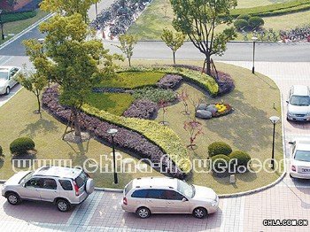 工程分為內(nèi)園與外圍綠化兩部分。內(nèi)園被生物藥學(xué)樓群包圍,中心綠地面積2500平方米,骨架大樹為香樟。紅花?木、金葉女貞、瓜子黃楊等傳統(tǒng)小灌木構(gòu)成基礎(chǔ)色塊,組合成一個(gè)近似"人體胚胎"的形狀,寓意了大樓的特點(diǎn)與功能。中心綠地四周被分為春、夏、秋、冬四個(gè)園子,白玉蘭、海棠、石榴、合歡等植物按季相表現(xiàn)搭配造景。