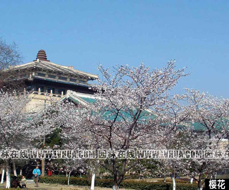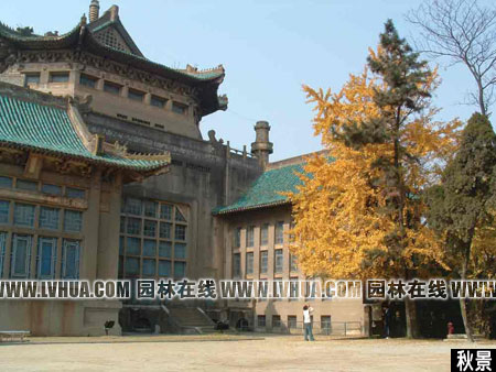 將遠處的自然景色借用過來,這種手法在我國城市建設史尤其是園林藝術史中比比皆是,稱為“借景”。將東湖及磨山的湖光山色“借入”校園景觀規(guī)劃中,是我們得天獨厚的地理優(yōu)勢。再現自然的手法主要有兩類:一是側重于還原自然,求其天造地設之效;另一種是工于構造意境,以小見大,求其人文之趣。它們的共通點是崇尚自然,與自然緊密結合。武大的校園綠化還充分利用園林植物學植物的季相交替、形態(tài)特征、色彩變化等要素,結合武大蜿蜒起伏地勢,創(chuàng)建出形態(tài)各異的景觀:春?雪白的櫻與蒼松翠柏和高大的銀杏相映成輝;夏?群芳爭艷、樹蔭蔽日;秋?滿園金桂飄香、紅楓盡染;冬?寒梅傲雪、松竹挺立。以植物造景命名的櫻園、桂園、楓園、梅園等教學區(qū),其詩情畫意的園林藝術與中西合壁的優(yōu)秀歷史建筑群融為一體,并將園林植物、建筑、人文雕塑、環(huán)境等學科融入校園環(huán)境建設之中,現在的武大櫻花更成為江城一景而蜚名中外。