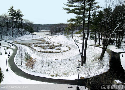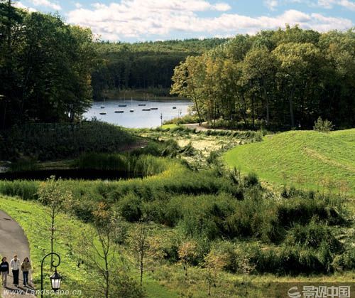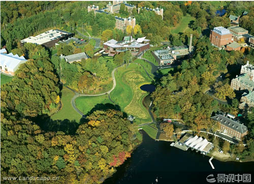 美國(guó)威爾斯利女子學(xué)院校友谷景觀再造工程占地13.5公頃,歷時(shí)七年。該地區(qū)歷史上曾受到污染,景觀復(fù)原的目的就是通過補(bǔ)救性的凈化系統(tǒng)創(chuàng)建具有生態(tài)功能的新景觀。