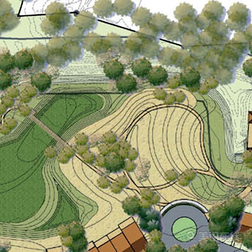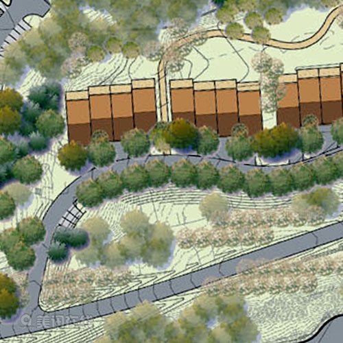 在低處,設計師們用鄉土樹種將每棟房子隔起來,使它們在大社區里形成自己相對獨立的空間。在較遠處的公園區,他們又為社區公眾開發了不同的空間,同時保障鄰近地區的私密性。上坡地帶種滿了稠密的樹林。一系列庭院、臺地園、花園為社區提供集會的地點,它們有的隱秘,有的不僅大且擁有開闊的視野。