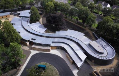 Hazelwood特殊學(xué)校是專門針對4到18歲的有嚴(yán)重的視覺或感官障礙或身體殘障的孩子們進(jìn)行教育的學(xué)校。教學(xué)樓比水平面要低,是一座形式自由、流暢的建筑物,其彎曲的造型與原有基地由石板路和櫸樹構(gòu)成的沒誒里景觀天然地融合在一起,顯得格外優(yōu)雅。大樓結(jié)構(gòu)主要由木材來支撐,而包墻材料則選用的是耐風(fēng)蝕性能高的天然材料,這樣既能保持房間的溫度,又能提高孩子們的感官察覺能力。而在主通道區(qū)域則設(shè)計了一面非常有特色的“感官墻”,墻面上的折痕可幫助盲童定位和辨認(rèn)方向。而設(shè)計師們別出心裁設(shè)計了一塊“穿梭”于整個學(xué)校的板,可讓孩子們很方便地進(jìn)行復(fù)健練習(xí)。