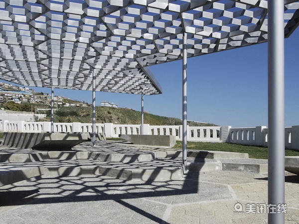 設計師們用簡單的預制六角形混凝土板作為整個項目的根基,同時在上面還做了許多富有變化的紋理和結構,其目的就是要將瓦爾帕萊索的新南門海岸沿線引向繁榮。