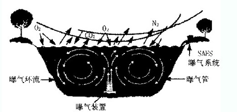 水體中溶解氧的存在,可以使好氧微生物通過自身的新陳代謝把水中的有機污染物降解成簡單的無機物,起到水體的自凈作用。另外水體中藻類的繁殖會引起水體中溶解氧的消耗,導致水體缺氧并滋生厭氧微生物,造成水體發黑發臭。因此,水體中應維持一定的溶解氧水平。為了增加水中的溶解氧(DO),同時也可避免池水因液下推進裝置推流過程中形成死角,進一步加強池水的流動性,因此對水池采取液下曝氣措施。