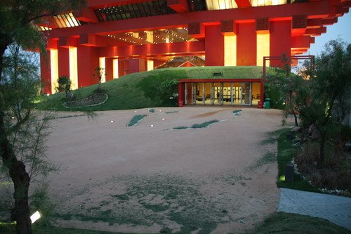“新九洲清晏”高出地面14米,面積約2.7萬平方米,在世博會會期里主要用于人流集散,在世博會后為公共休閑場所。“新九洲清晏”以屋頂平臺開闊的中心廣場寓意內湖水面,以九處園林景觀寓意九個島嶼。作為中國館主體的國家館位居“新九洲”之首,以“雍”命名,取“和諧”、“本”、“宗”之意;其他八洲依地勢和氣候分別為“田”、“澤”、“漁”、“脊”、“林”、“甸”、“壑”、“漠”,這些都是中華大地上的典型地貌景觀。象征荒漠、戈壁部分小島上還會建幾間小房子,作茶室、咖啡屋等休閑用途,有意思的是,這些小房子也會與每個小島的環境匹配,比如在“漠島”上,茶室就會被“埋”在一座沙丘底下。圓明園的“九洲清晏”被水系分割,當年是用大量的橋連接而成,因此在世博園的屋頂花園中,也是以水面來環繞每個小島,并在水面上三四厘米處,設立步道,讓參觀者穿梭水澤之間,體會清涼的感覺。以碧水環繞的九個島嶼將通過不同景觀的展現反映不同的自然地貌和人的生存狀態,象征我國廣袤遼闊的疆土。