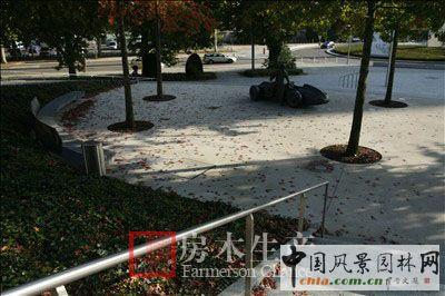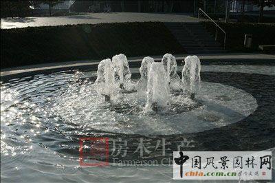 秋天的落葉,飄散在建筑周邊空曠的景觀廣場(chǎng)上。水汩汩地涌,精確的石材鋪裝在陽(yáng)光下閃閃發(fā)亮。
