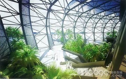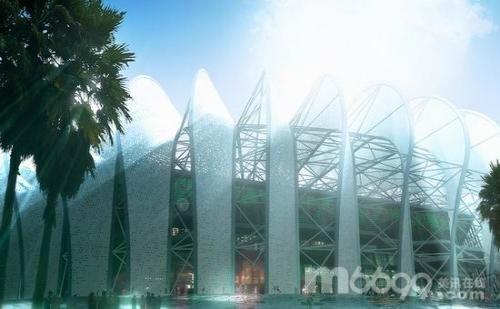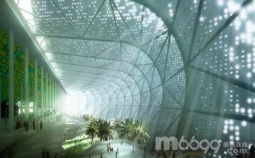 直射陽光被不同方向的葉片方遮擋、消除了。建筑師在體育場和開放的“封套”之間的縫隙空間中設計一座花園,為參觀者提供了一個熱緩沖區和室內綠洲。