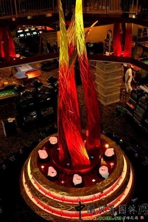 在美國俄克拉何馬州的這家名為“火湖”的大賭場內,矗立著一束兩層樓高、玻璃打造的“火焰”。