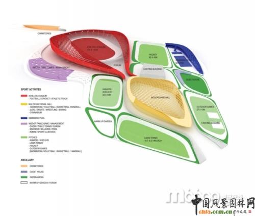 印度運(yùn)動(dòng)場(chǎng)的每個(gè)部分都有不同的運(yùn)動(dòng)活動(dòng)空間。“水滴”在尺寸、設(shè)計(jì)和用途方面各不相同,但是StudioSymbiosis工作室像設(shè)計(jì)池塘中的鵝卵石一樣,將它們聯(lián)系了起來(lái)。這座在建筑模仿了不斷擴(kuò)大的池塘的此起彼伏,慢慢的變成了一座景觀設(shè)計(jì),而不再是一座普通的運(yùn)動(dòng)場(chǎng)建筑。