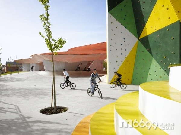 位于西班牙梅里達市的青年工廠是當?shù)卣蜕鐓^(qū)以及設計師們合作的經(jīng)典之作。這樣的設計在滿足青年需要的同時,也為當?shù)卦鎏砹艘坏懒聋惖娘L景線。