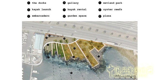 項目簡介:布魯克林海灣作為工業的出入口通道,其中的一些基礎性設施、水位下降后的海岸,海灣道路都分散在其中,失去了原有的價值,針對這些,該項目的設計打開了海灣的入口,并且通過一系列的碼頭、橋墩和花園連接了海灣。海灣也被轉變成了豐富陸地和水生生物多樣性的棲息地,而且通過提升管理促進了文化和教育的銜接。