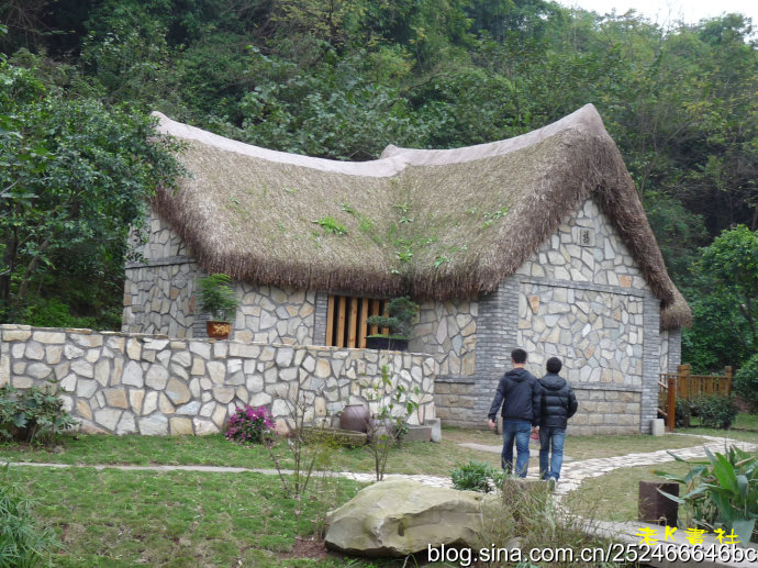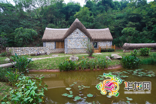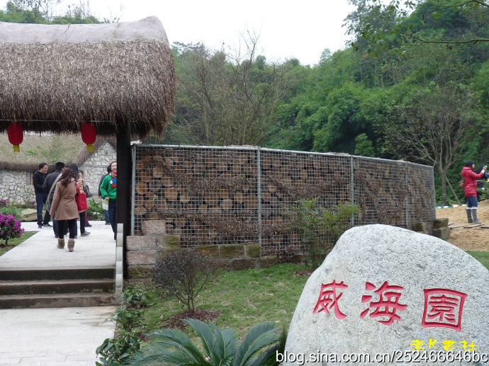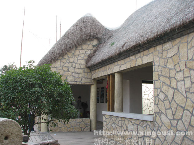 據展園設計人員介紹,茅草石屋"來頭"不小,它的原型取自膠東生態民居,又名"海草屋"。海草屋用海里的大葉藻做屋頂,石頭做墻體,海草干了之后柔軟蓬松,與石頭墻體相映成趣,整個制作采用民間手工技術,工序達70余道。整座屋子冬暖夏涼,且完全生態,是膠東沿海特有的生態民居,據說只有威海的苫匠才有這門手藝。