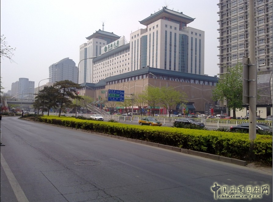 本工程為2010年城市綠化景觀提升項目(第一批)一標(biāo)段。道路兩側(cè)有高大喬木作為行道樹,綠地內(nèi)栽以常綠喬木,保證了長安街四季常綠的景觀效果。間隔較長的行道樹下、每個路口兩側(cè)或點(diǎn)綴了天目瓊花或點(diǎn)綴了紫葉矮櫻、紅花碧桃等灌木,常綠樹之間栽植了華北紫丁香等灌木,給人以豐富的色彩感。長安街景觀提升工程主要改造的重點(diǎn)在于增加色帶,道路兩側(cè)常綠喬木周圍均滿栽大葉黃楊籬,體現(xiàn)了樹木的多層次性。配以綠地兩側(cè)的行道樹既為過路市民起到遮陰納涼的效果,又在視覺上突出豐富的色彩感與層次感,不禁能為市民在夏季帶來清涼舒適的感覺。綠地一邊設(shè)有公交車站,環(huán)境比較噪雜,另一側(cè)多為居民小區(qū)或商業(yè)辦公區(qū),故在綠地內(nèi)大量種植大葉黃楊籬,不禁起到一定隔音效果,也有鬧中取靜的寓意。五一、十一期間長安街兩側(cè)綠地內(nèi)增加了花卉,同時也為整個長安街景觀增綠添彩,增加了景觀整體的觀賞效果。