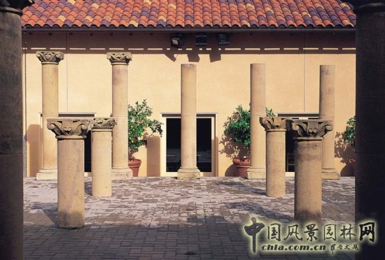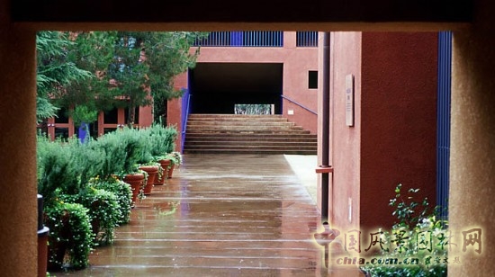 20世紀90年代,PWP景觀設計公司和莫斯科設計師Ricardo Legorreta為斯坦福大學商學院的一次短期MBA強化培訓項目設計了一個新場所,并獲得設計競賽獎。項目是一個綜合性的場所,包括起居室、教室、廚房、夜宵場所等,而周圍景觀設計以垂柳、蕨類植物、栽植深綠色松柏的大草坪和梨園為主要特征,將這些硬質的設備場所柔和化。