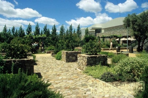 項(xiàng)目位于加利福尼亞納帕河的牛軛湖邊上,博物館在最高處,花園和河岸可以處理洪水。主要的入口過道是一條825英尺長(zhǎng)的卵石小道,上面線型栽植了高大挺拔的白楊,東邊是一條250個(gè)臺(tái)階的長(zhǎng)直階梯。展覽園分割為多個(gè)草坪區(qū)域,栽植加利福尼亞果樹、蔬菜和觀賞性植物等。停車場(chǎng)搭建了多種葡萄藤和當(dāng)?shù)胤N草坪。