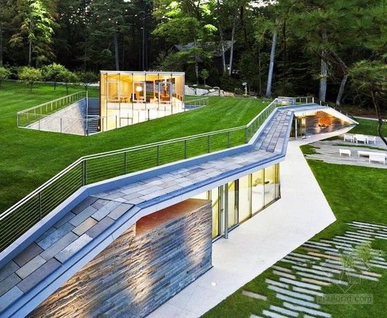 這座華麗的綠色屋頂游泳館位于紐約的佐治湖畔,它由GLUCK+事務所設計。這個團隊力圖將這座建筑與景觀完美地融合在一起,于是他們努力將游泳館設計得很低調,并用翠綠的草皮覆蓋在它的表面上。