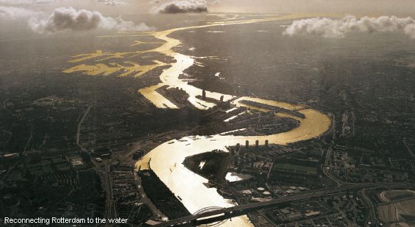 第一個角度,水平面上升的問題可以通過一個新的海洋防御方案得到解決。堤壩外圍區域采取的策略是承受周期性的洪水泛濫。第二個角度是把馬斯河指定為主要的公共區域,人們可以住在馬斯河沿線和上面。水的潮位變化是衡量建造濱河住宅區可能性的標準。第三個角度是不僅尋求一個更加廣泛的水上公共交通系統,還有尋求一個更加平穩的水網系統和陸地系統之間的互聯關系,建造出一個綜合性且有趣的公共交通系統。第四個角度提議把雨水排放從鹿特丹的排水系統中脫離出來。鹿特丹不會進一步擴建昂貴的地下水利基礎設施,而是讓雨水的保留、儲存和排放在公共空間上看得見且聽的見的。最后一個角度是強調突出馬斯河河岸多樣化的生態潛力。