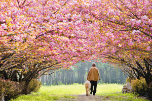 秦嶺腳下一苗圃內(nèi),老人、羊與櫻花構(gòu)成了一幅美麗的圖畫