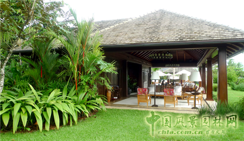 如圖所示是酒店的海岸別墅,設(shè)計者最大化地減少了房屋的基底面積,用以保證生態(tài)環(huán)境。設(shè)計過程中很重要一點就是使用當(dāng)?shù)卦闹参铮鹊竭@些植物再生長,成熟以后就沒必要花費很大的維護成本了。竹子之類的都是當(dāng)?shù)卦牟牧稀?