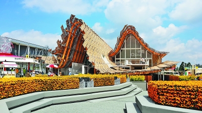 天地人和是中國人幾千年來跟土地和老天打交道中得出的哲學,如何在建筑層面將這種哲學思想表達出來是對建筑師智慧的考驗。在介紹中國館的哲學表達方面,陸軼辰介紹說:“從入口景觀處黃色的花到進館后的麥稈,一直到館內的LED麥田,這些實際上是一個序列,高度都是一樣的,我們通過這一個序列來表達‘地’的概念。‘天’就是這個屋頂,這里采用了最先進的膠合木技術,屋頂上的竹板是用參數化寫出來的,一共是1052片大概3米*1米的竹板。人作為使用者穿行在這個建筑之間,天地人的概念在水平的建筑的不同層面表現出來。‘和’是最后通過影廳展示,里面講述的是中國人春節回家過年的故事。”