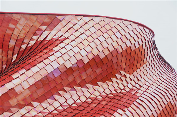 里伯斯金把這個爬蟲般的結構稱為一條“手工龍”。它的外表面由大約4000片魚鱗狀的陶瓷瓦片覆蓋。