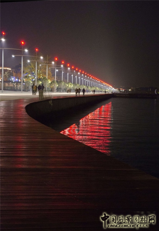 這是供游人們散步、跑步、欣賞城市和大海的地方。水邊的木甲板標志著陸地和海洋的界限,寬闊的混凝土堤岸描繪出海岸的節奏感。陽光、海風和開闊的視野使游客們在固態因素--大規模的防洪堤和液態因素--大海之間盡情的享受愜意時光。
