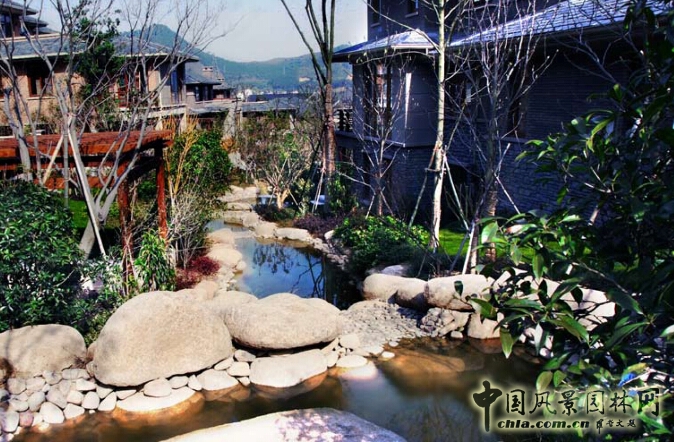 杭州的山湖印別墅,也是借著原有的山溪地勢做出的地形,雖然這個地形做起來比較辛苦,但最后的效果還是非常好的。