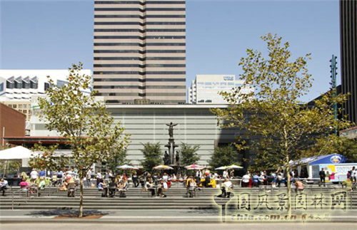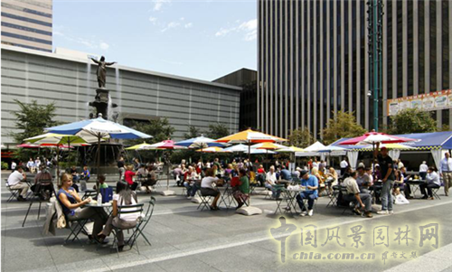 這里的植物布置就好像置身于公園,打造出更加宜人的環境。此外,道路兩旁的樹木形成了天然的隔斷,將不同區域進行劃分,取代了之前的混凝土矮墻。值得一提的是,新改造的噴泉廣場吸引來個人攤位甚至大型餐飲企業,使得整個廣場的設施更加齊全,帶給人們更好的體驗。重新設計的噴泉廣場將給辛辛那提市的居民提供一個交流、餐飲、娛樂的場所。