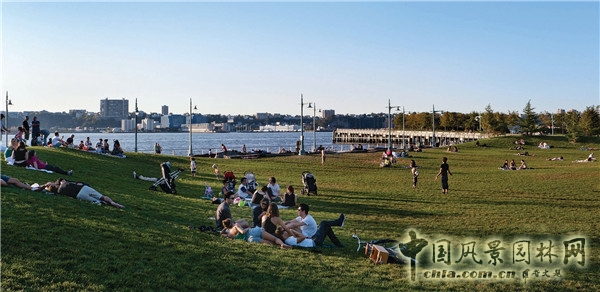第5景觀區的改造深入卻又不著痕跡,它為公眾打造了一處可以修身養性、娛樂休閑的濱水空間,廣闊的哈德遜河更是為獨特的草坡設計增添了氣質。