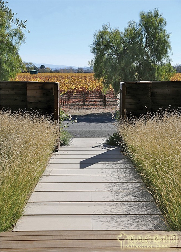 簡單的圍欄、小道和草地讓人一眼就能望見周圍的葡萄園。