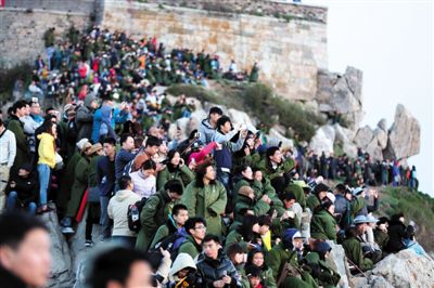 5月3日,山東泰安,游客云集泰山看日出。國家旅游局發(fā)布的“全國價(jià)格信得過景區(qū)承諾名單”中,不少知名5A級景區(qū)未上榜,泰山是其中一個(gè)。