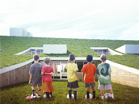 綠色覆蓋了整個建筑的屋頂,給孩子們創造了一個連續的景觀活動空間。