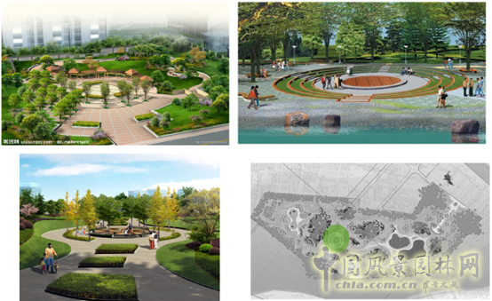 生態文化區里面設計了晨曦廣場,該廣場既是公園的景觀中心,又要滿足節假日及活動時人流的集散要求,設計時結合植物、小品等景觀元素設計了集散廣場,花池座椅。