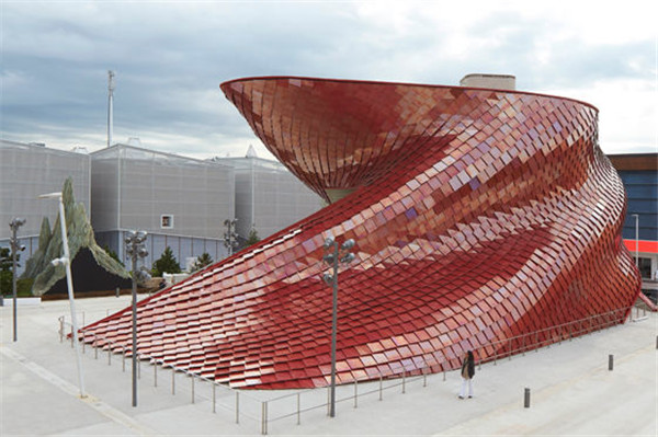 美國建筑大師Daniel Libeskind為萬科設計的展館,占據了米蘭世博園內所有企業館中最好的位置,位于園區南北主軸線北端,緊鄰阿瑞娜湖和意大利廣場,Daniel Libeskind在此重新定義了食堂,希望在快速建造、人口遷入、城市形成的過程中找到一種方式。