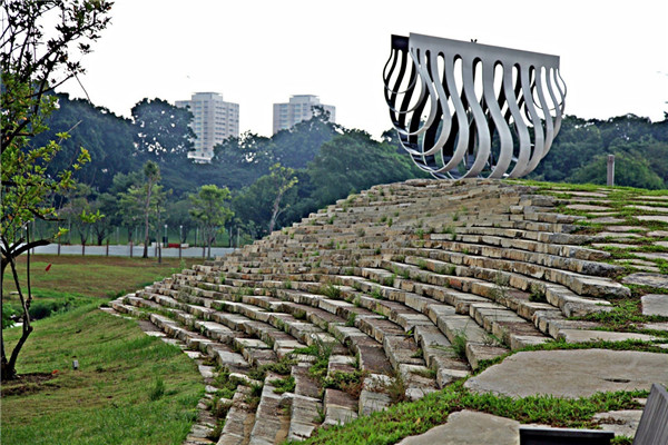 舊河道改造后循環利用的混凝土石材被用于創建一處面向河流的嶄新觀景點