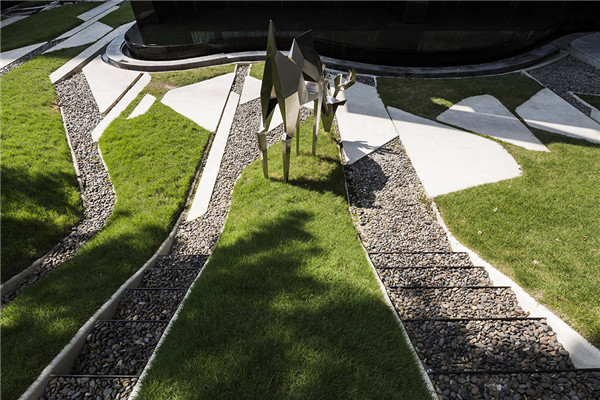 為了減少地表流水,花園大部分區域覆蓋了草坪,不僅有利于降低曼谷強烈陽光的反射熱量,還能為住宅大廳創造宜人的微氣候。