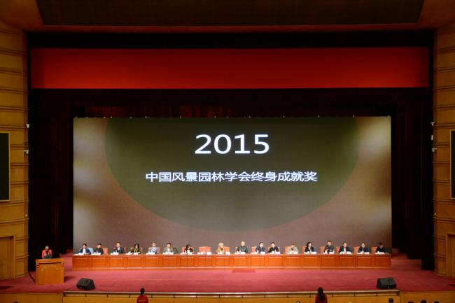 開幕式上還頒發(fā)了中國風景園林學會終身成就獎和全國優(yōu)秀科技工作者獎。隨著抒情的音樂響起,在工作人員聲情并茂的頒獎詞誦讀中,中國風景園林學會終身成就獎頒發(fā)儀式開始,2015年此項殊榮的獲得者是原天津市園林局副總工程師陳威,華南理工大學建筑學院教授劉管平,中國風景園林學會女風景園林師分會副會長檀馨,上海市園林設(shè)計院有限公司名譽院長周在春,原中國風景園林學會副理事長任春秀,原中國公園協(xié)會副會長、廣州園林局老局長吳勁章六位老人。隨后,北京市花木有限公司總經(jīng)理兼總工程師于學斌、浙江農(nóng)林大學風景園林與建筑學院院長包志毅、上海市園林設(shè)計院有限公司董事長朱祥明等三位因其在風景園林行業(yè)的突出貢獻,獲得中國風景園林學會全國優(yōu)秀科技工作者獎。