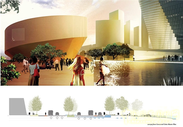 通過光照、過濾技術處理現有流域和暗渠,重建老三一河,緊鄰達拉斯城建立新而清晰的景觀帶,這一區域的價值得以提升,奠定了發展的基礎