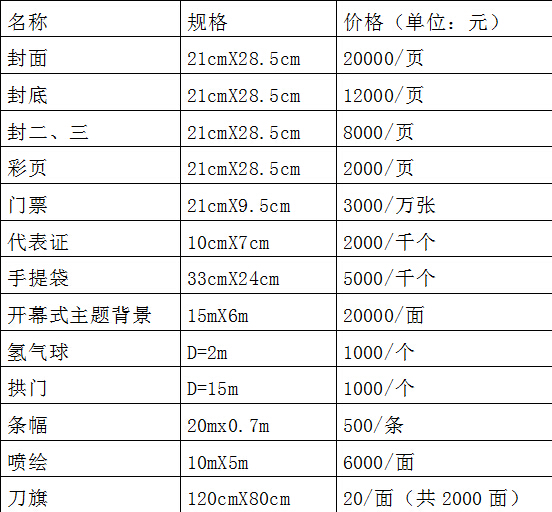1、標準展位:3mx3m1000元/個、雙開口1200元/個(會刊彩頁一面、門楣、三面圍板、一張洽談桌、二把椅子)