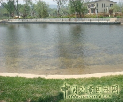 潤澤莊苑A03會所景觀水系總面積約11000㎡,水系平均水深為1.5米,防滲形式為柔性防滲,補充水源為地下水。