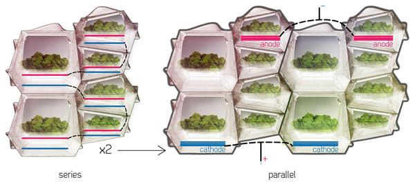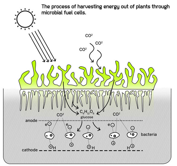 苔蘚種植在一中由水凝膠和碳纖維組成的特制“土壤”中,這種土壤可以作為正極吸引電子,收集電子生成電能。Mitrofanova 的模型可以利用16個模塊生成3伏的電壓,看起來雖然不多,但仍然能供不少電器增加效能使用,例如建筑的LED照明系統。Mitrofanova 相信這種系統在世界的北邊會更好地進行應用,因為這些地區太陽能光伏電板的效率較低,而苔蘚可以彌補這一問題。
