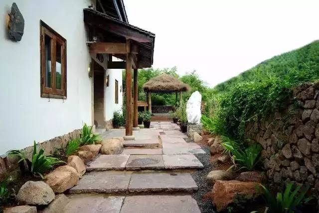 門前有石階,是用有紋理天然石塊的削成。種一些野花草在石階縫隙內。取帶有苔蘚痕跡未經斧鑿的石塊砌成圍墻,這樣便有了山谷間的風味。