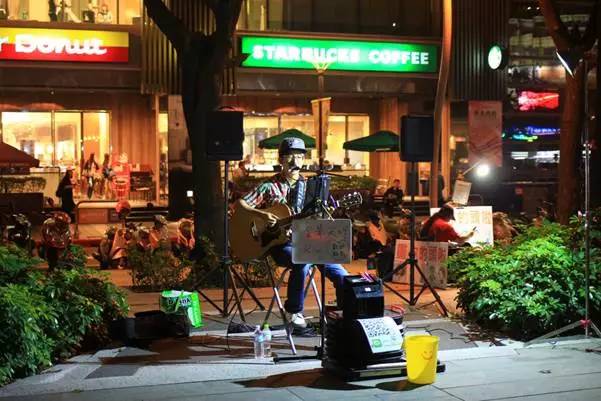 我感受頗深的,是在緊鄰勤美誠品商業區的路段。由于周邊都是商業用地,人流較大,所以設計了現代風格的休息亭和木質室外活動平臺,取名“轉角咖啡廣場”,供人小憩。還有一些小集市類的手創藝人區。