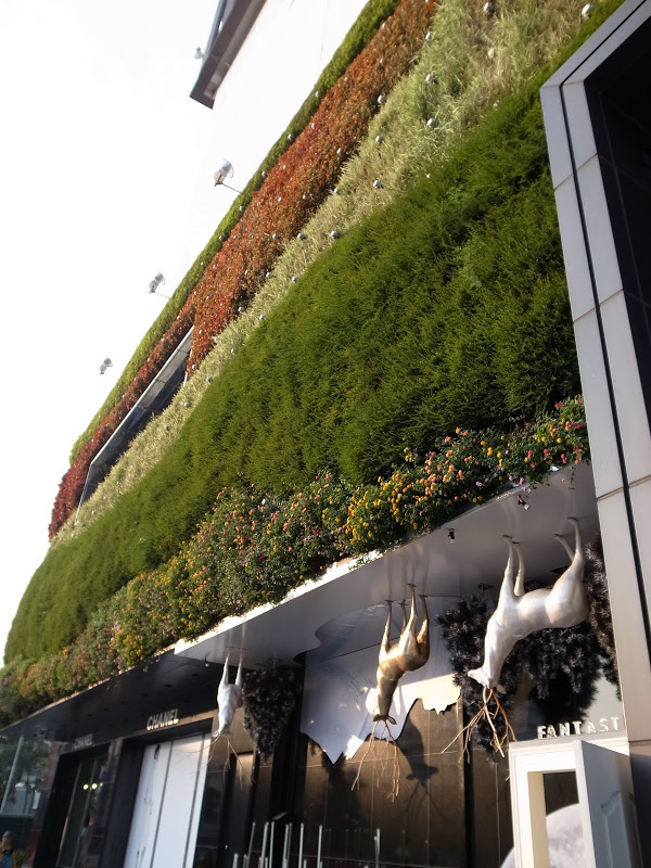 勤美天地,誠品書店就在這里。它在臺中諸多新購物商場中并不算是特別大的,不過重點在于它的精致,與建筑設計的巧思。建筑師在它外部和內部所覆蓋的綠色植墻,讓它融入綠園道的綠帶之中。