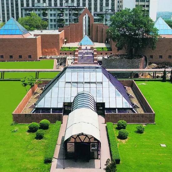 博物館以2000年前的南越王墓遺址為核心,建筑順應基地原有陡坡地形,因山就勢,拾級而上,將展館、墓室及擴建展室這三個不同功能的空間,連成一個整體,形成古今對話的張力。造型參照漢代石闕,莊重雄勁。主入口位于厚重石墻之間充滿天光的一道縫隙,虛實構成強烈對比,建筑以墓室結構材料的紅砂巖為主要材料,并在石闕上雕刻南越文化浮雕,將藝術與建筑結合,既詮釋漢文化內涵,又體現了時代精神。