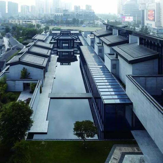 毗鄰而立的傳統建筑成為新建筑形態的源泉。布局水平舒展,形成層層遞進的多個院落。借鑒傳統的“水宅園”的方式,一系列單元式展廳布置兩側,以水庭為核心。展廳之間營造庭院,虛實相間。建筑外表皮通過石材的切割,形成與傳統街區青磚尺度相匹配的細密橫向線條。建筑形式蘊含著全面的綠色生態技術的應用。充分考慮建筑通風、釆光、隔熱、防潮及雨水收集和循環利用、太陽能利用和機電智能化管理,達到國家綠色設計的最高標準。