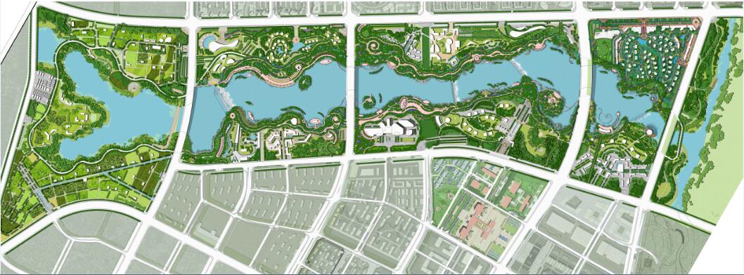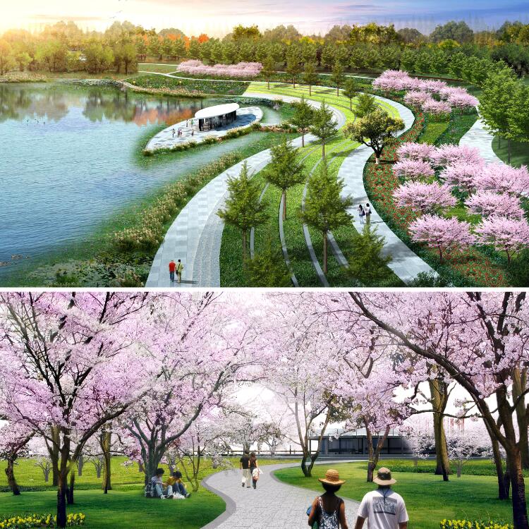 對于新建的河堤,并保留和恢復(fù)濱水帶的濕地;部分地段擴(kuò)大淺水灘地形成滯流區(qū)或人工濕地、淺潭,為魚類和多種水生生物提供棲息地、繁育環(huán)境和洪水期間的庇護(hù)所;進(jìn)行河床處理,河底部分用卵石鋪設(shè),過濾河床的淤泥,滲透和凈化水,而且不影響水生植物的形成和生長,而且可以利用河道開發(fā)水上游艇項目。河堤的設(shè)計改變了通常的單一標(biāo)高和橫斷面的做法,而是結(jié)合起伏多變的地形,形成亦堤亦丘的多標(biāo)高和多種斷面的設(shè)計,形成豐富的景觀感受。堤岸兩邊的處理采用自然土坡的方式種植大量鄉(xiāng)土樹種,與河道共同形成一個內(nèi)河濕地系統(tǒng)同時為鄉(xiāng)土物種提供了一個棲息地,同時創(chuàng)造豐富的生物景觀,為休閑活動提供場所,提升河流的生態(tài)文化價值。休閑活動場所結(jié)合健身步道綜合考慮,可吸引各類人群進(jìn)入濕地公園活動。