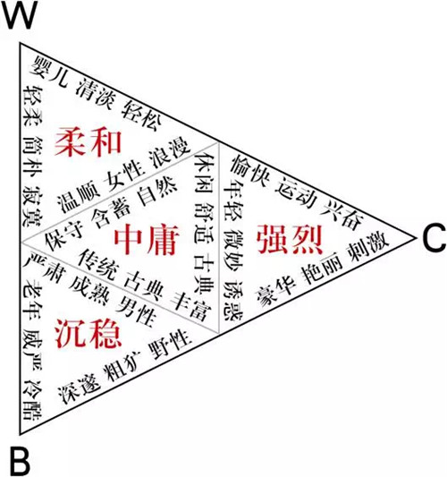 顏色配置處于中間灰度區域情感調性則中庸、自然。