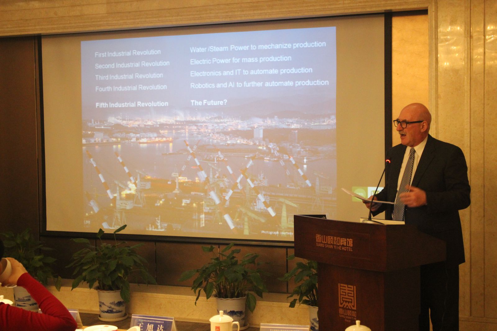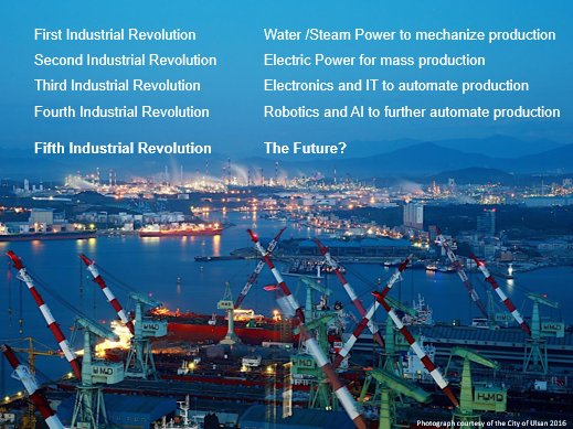 首先感謝會議主辦方的邀請,也感謝世界園林雜志一直以來在風景園林領域所做的努力和引領。我今天的演講主題景觀重塑,它與我過去30年來在城市設計、棕地再生、技術領域方面的教學、出版和實踐是緊密相關的。我的小標題是第五次工業革命的景觀理論和實踐,是對現存的城市景觀進行調節和干預,這些景觀是在已建成的城區、社區和場地,我們會把它重塑成有彈性的,可持續的城市的制造、生產和生活中心。我創造這個概念是用來描述當前系統性的全球轉變,是結合制造和生產方式加速自動化的改變,以及當地的能源、資源消耗的支出模式,民用基礎設施以及城市景觀等等。在居住環境的力量以及景觀設計對人類健康和可持續發展,影響的大背景下進行的。要了解第五次的工業革命我們先要了解前四次,第一次是水蒸氣動力的機械化生產,第二次是電力進行的大規模生產,第三子是電子技術和自動化生產,第四次是結合機器人以及人工智能的進一步的自動化生產,第五次就是今天我要講的即將到來的未來。我對未來景觀的思考就像照片所示,這是韓國蔚山船廠的夜景遠眺。怎樣才能讓他們不僅用于城市再生與塑造,同時還能促進能源、排放、廢棄物以及社會空間的可持續發展。