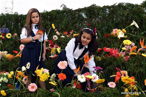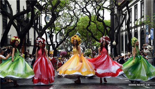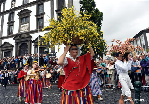葡萄牙馬德拉鮮花節 鮮花搭建“希望之墻”